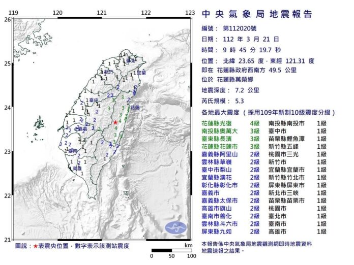 登入 歡迎!登錄到您的帳戶 您的用戶名 您的密碼 Forgot your password? Get help 隱私權政策 (2025.1.1更) 找回密碼 找回密碼 您的電子郵件 密碼將通過電子郵件發送給您。 今花東連4震!最大規模5.3 花蓮萬榮4級 新聞地方花東 2023-03-21 Xinspot 545views 分享 FacebookPinterestWhatsAppEmail列印LINEFlipCopy URL 中央氣象局指出,今天中午9時45分發生芮氏規模5.3地震,全台有感。地震深度7.2公里,震央位於花蓮縣政府西南方49.5公里(位於花蓮縣萬榮鄉),最大震度花蓮縣4級。氣象局也針對南投縣、彰化縣、花蓮縣、台東縣發布災防告警訊息。 (取自氣象局網站) 氣象局地震測報中心表示,主因是山脈板塊受到擠壓造成,屬於剛性地質的地震,通常能量會一次釋放,未來2天可能會有規模3至4.5左右的餘震。 各地最大震度: 花蓮縣地區最大震度 4級 南投縣地區最大震度 3級 臺東縣地區最大震度 3級 嘉義縣地區最大震度 2級 雲林縣地區最大震度 2級 臺中市地區最大震度 2級 宜蘭縣地區最大震度 2級 彰化縣地區最大震度 2級 嘉義市地區最大震度 2級 高雄市地區最大震度 2級 臺南市地區最大震度 2級 屏東縣地區最大震度 2級 苗栗縣地區最大震度 1級 新竹縣地區最大震度 1級 桃園市地區最大震度 1級 新竹市地區最大震度 1級 新北市地區最大震度 1級 臺北市地區最大震度 1級 氣象局指出,9:45左右花東地區附近發生有感地震,位於花蓮縣政府西南方 49.5 公里 ,即花蓮縣萬榮鄉,地震深度7.2公里,芮氏規模5.3。 上午9時46分,在花蓮縣政府西南方 51.3 公里 ,位於花蓮縣萬榮鄉,發生芮氏規模4.4地震。花蓮縣地區最大震度4級、南投縣地區最大震度2級、台東縣地區最大震度1級。 上午9時54分,中央氣象局發布小區域有感地震報告,在花蓮縣政府西南方 50.5 公里 ,位於花蓮縣萬榮鄉,發生芮氏規模3.9地震,地震深度5.2公里。花蓮震度3級,南投及台中1級。 上午9:59分,花蓮萬榮鄉發生芮氏規模3.7地震,深度8.3公里,花蓮3級,南投及台東都是1級。 氣象局地震測報中心主任陳國昌指出,這幾次地震震央是在台灣比較接近內部、山脈板塊受到擠壓後釋放的能量,沒有特別需要擔心的地方,震央位置約在花蓮、南投交界,因此主要震度分布都在中部,主要是花蓮、南投有4級、3級。 陳國昌說,剛性地質的地震通常餘震數不多,如果有,這兩天內可能會有規模3以上、不超過規模4.5的地震,請民眾不用擔心。 我有一個想法 取消回應登入發表評論 最近瀏覽 111年度新北市50處賞螢全攻略 閱讀更多 大自然的禮物 奇亞籽與山粉圓的秘密 閱讀更多 聖玥坊手工皂:一個讓肌膚感到清新、健康的新選擇 閱讀更多 相關文章 111年度新北市50處賞螢全攻略 新北市政府農業局宣布,即日起至6月底,推出111年度新北市賞... 台灣全面禁止電子菸 納管加熱煙及載具 吸菸年齡提高... 台灣《菸害防制法》的部分條文修正,今(22日)正式上路,... 普發6000元明開放網路登記 如何登記?怎麼領?分... 全民普發6,000元,線上登記系統、日期及分流順序公布了!數... 今起輕症免隔離「7大措施全取消」勞工、學生怎請假?... 防疫措施逐步鬆綁,新冠肺炎確診隔離走入歷史,今(20)日起輕... 前一篇文章今起輕症免隔離「7大措施全取消」勞工、學生怎請假?9QA一次看下一篇文章普發6000元明開放網路登記 如何登記?怎麼領?分流表出爐一次看!